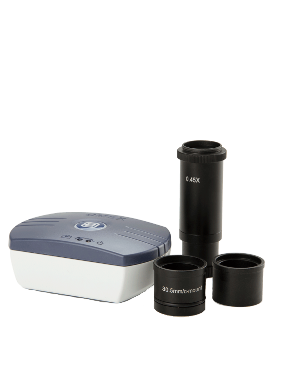 0.45x objective with C-mount, USB 2.0 cable, 30 and 30.5 mm adapters for