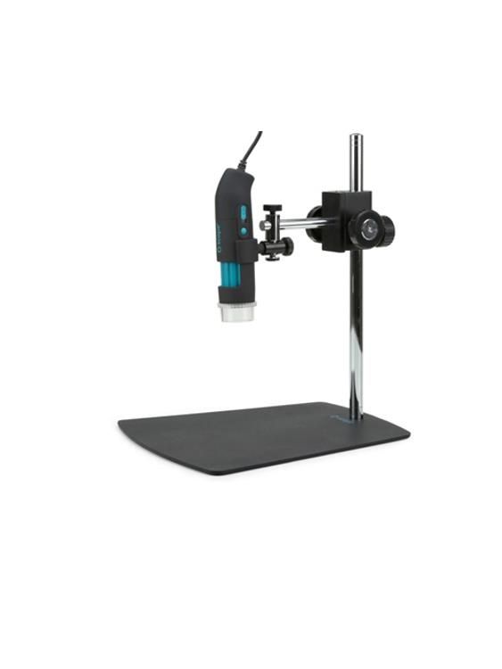 Extra stable and height adjustable stand with fine focus adjustment, and fixed positioner for precise microscope control in height, suitable for large objects, ergonomic design