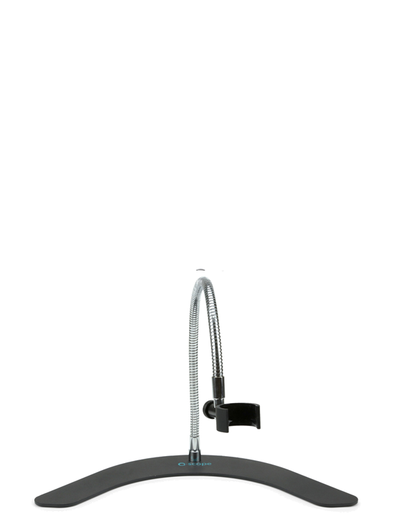 Q-Scope digital microscopes can be combined with many different types of bases, from simple to professional ones, depending on the application. They are designed to be stable, well balanced and provide smooth adjustment and proper positioning of the microscope. Desktop models consist of a black coated metal base and a steel pole. The 'gooseneck' model consists of a metallic, boomerang-shaped base and a colored flexible pole 'gooseneck' type. Each base also has a clamp for mounting the microscope. A unique feature of the Q-Scope base range, is the 3D-Positioner, which allows for easy and accurate microscope placement and focusing with just one hand! Browse through the available base models and upgrade your Q-Scope.